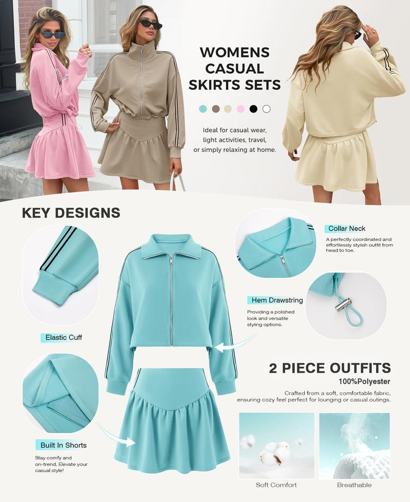 It’s versatile enough to wear as a full set (throw on sneakers for a laidback vibe) or mix with other pieces (pair the sweatshirt with jeans, or the skort with a turtleneck).