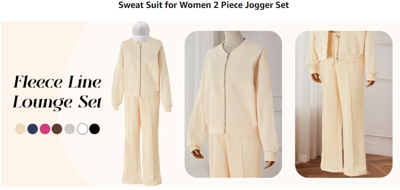 Women's matching sweat set: Fleece zip jacket + wide-leg sweatpants, casual loose fit.