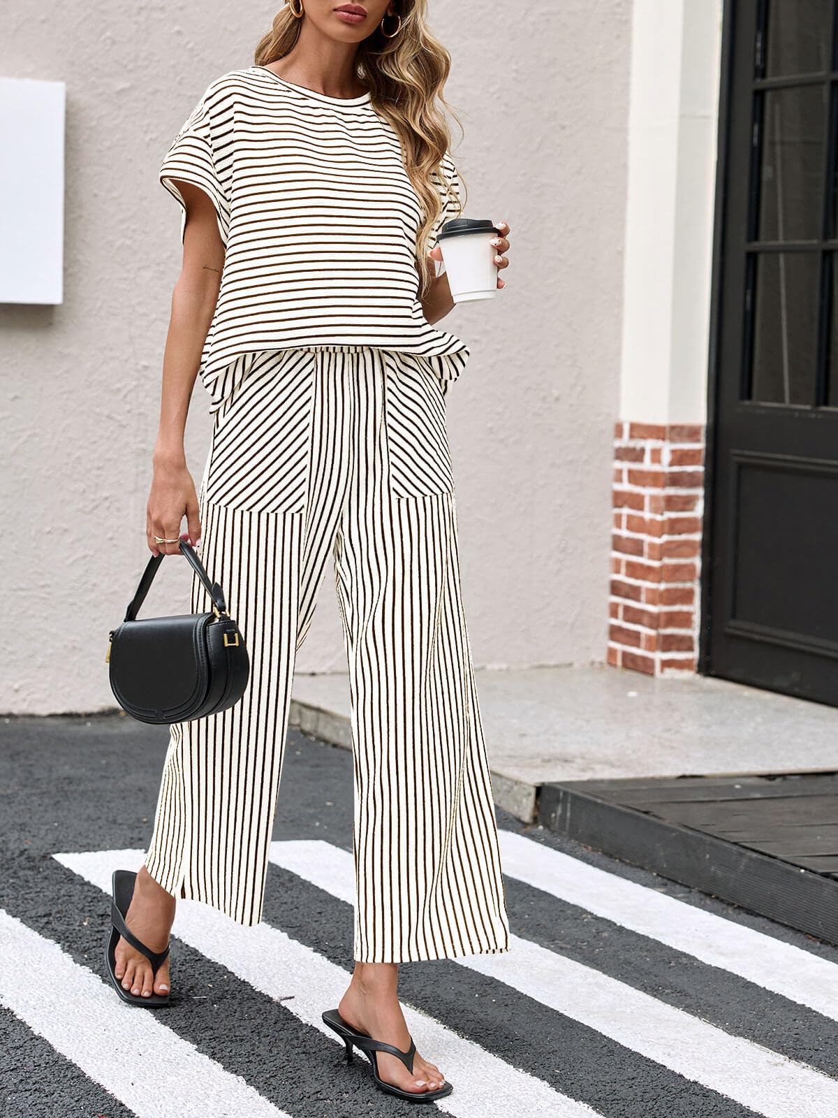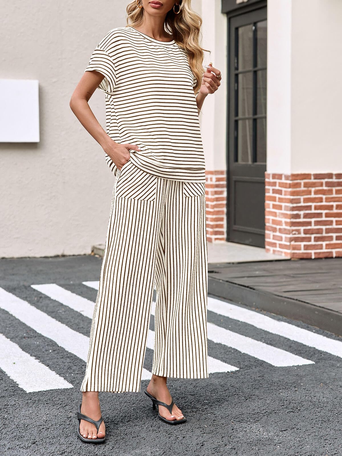 The unique horizontal and vertical stripe pattern adds a trendy touch that instantly elevates your look, making you a fashionista wherever you go. This set boasts incredible versatility—wear it as a complete matching set for a cohesive casual look, or mix and match the pieces on their own for endless styling possibilities. Dress up the set with heels and accessories for a chic daytime outfit, or keep it casual with sneakers for a laid-back weekend vibe.